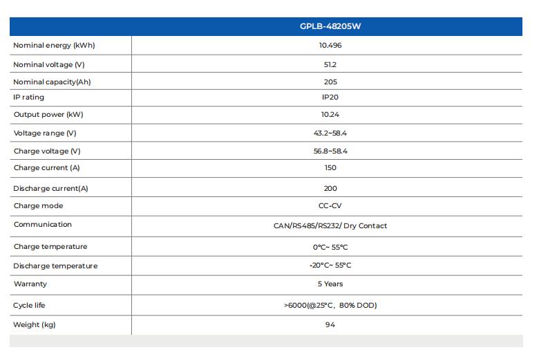 10.49kWhGospower GPLB-48205W wheeled lithium battery adopts the feature of fast installation. Up to 16 strings in parallel, providing strong scalability, which can be used in your home or small commerical scenes.